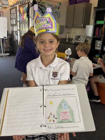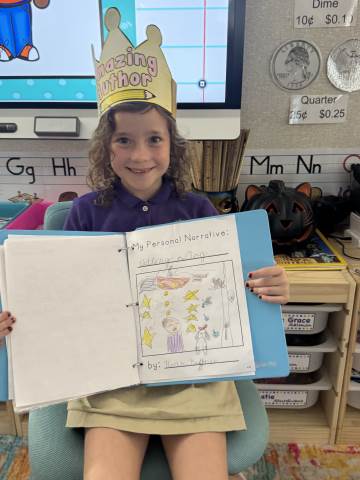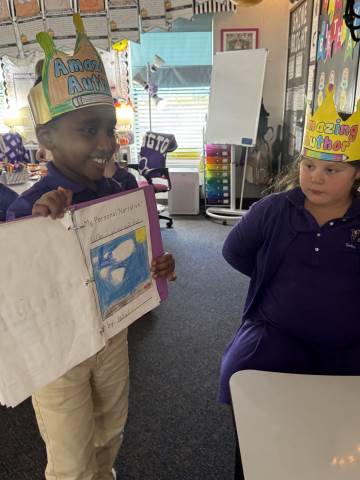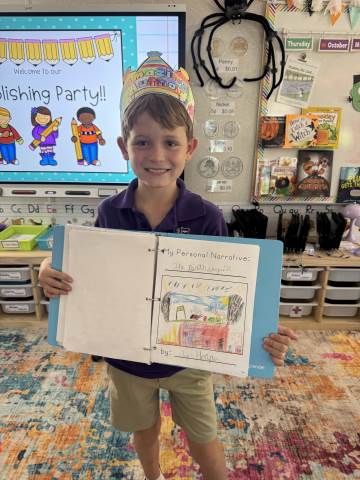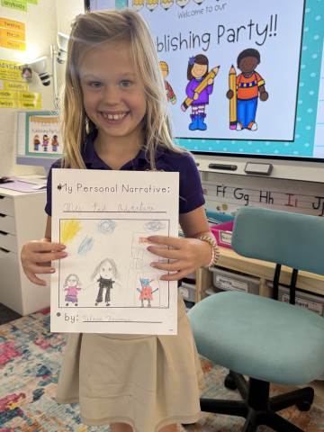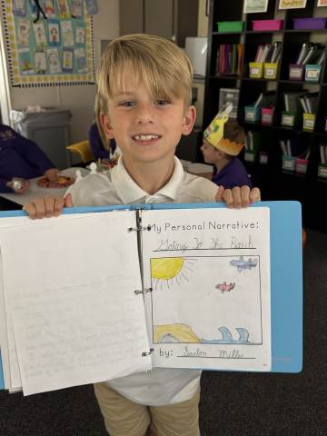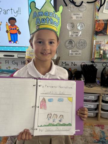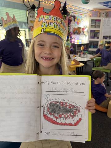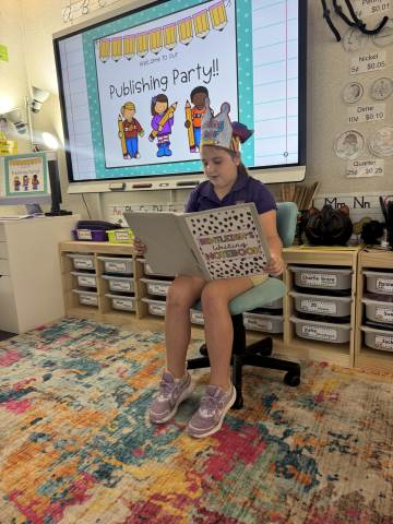 Our second-graders celebrated their small moment narrative writing with a publishing party! They have been working hard using the writing process to create personal narratives. They practiced using various ways to hook the reader with engaging beginnings and descriptive language. These amazing authors did a fantastic job sharing and listening to each other's stories. We're looking forward to seeing more amazing work from our see second-grade Sunshines!