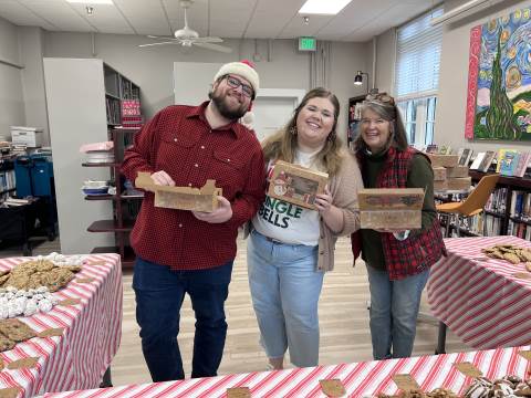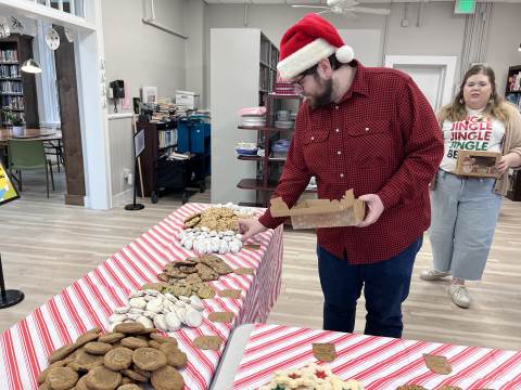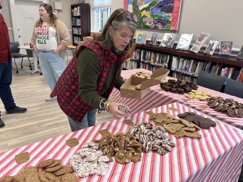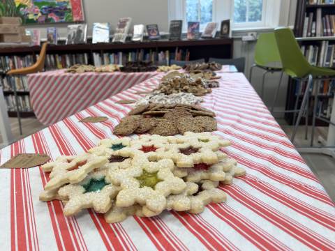 Faculty and staff members participate in the annual cookie swap, hosted by the Upper School Library.