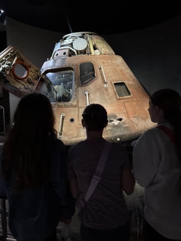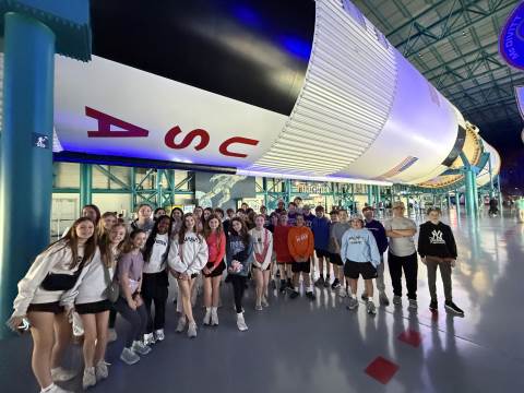 From there, the group traveled to Cape Canaveral and Kennedy Space Center, where learning came vividly to life. Students stood beneath the Space Shuttle Atlantis, met an astronaut who flew aboard Atlantis, and experienced the awe of seeing the Artemis II SLS rocket poised on Launchpad 39B in anticipation of its March 6 launch.