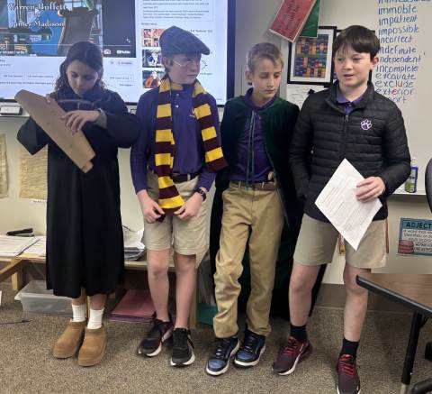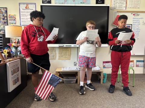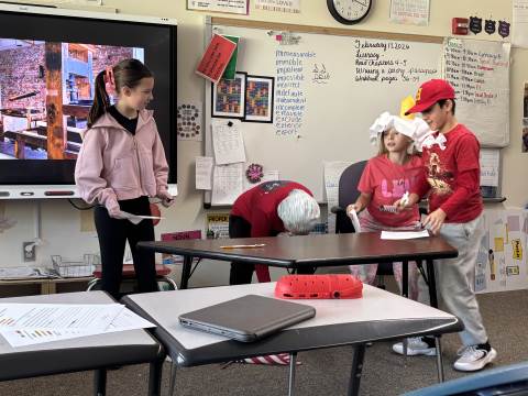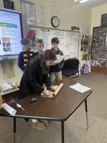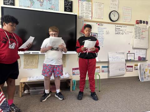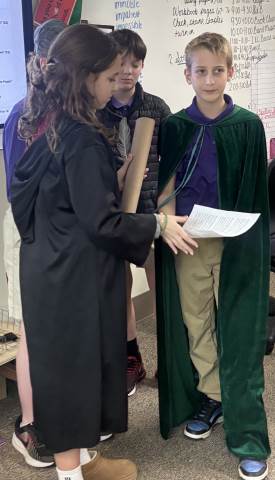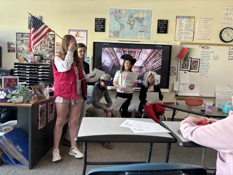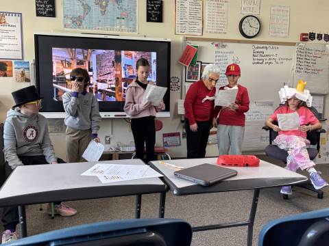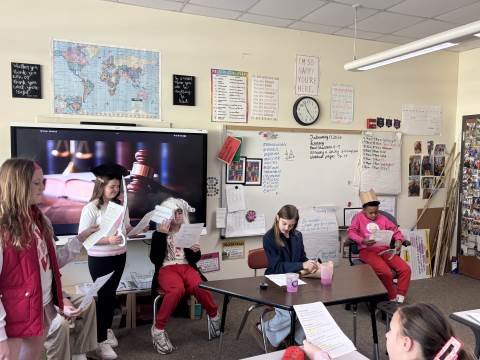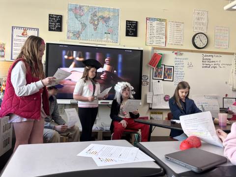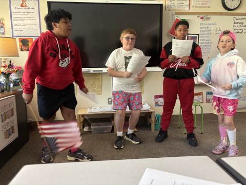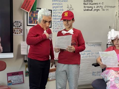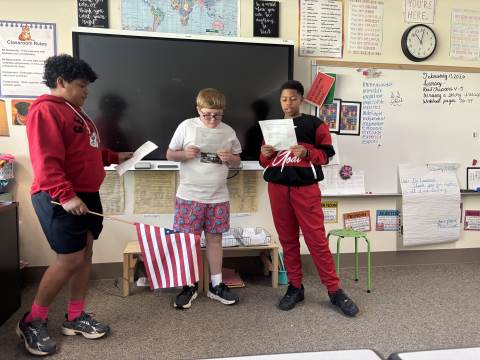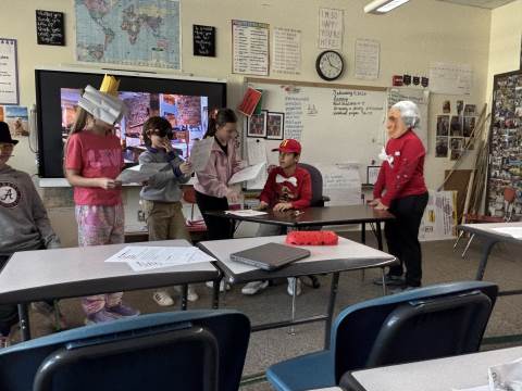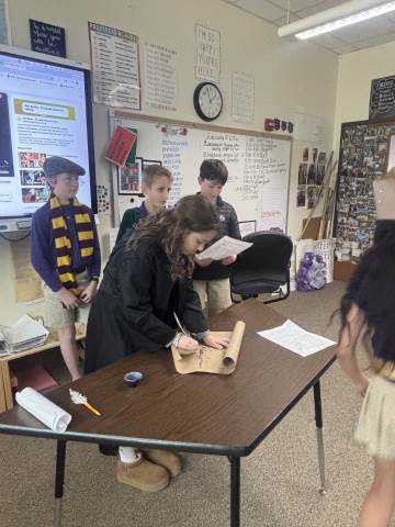 Fifth-graders reenact the signing of the Declaration of Independence, portraying the colonial leaders who courageously declared independence in 1776. This hands-on activity deepens students’ understanding of the historical significance, thoughtful debate, and bravery behind the birth of our nation.
