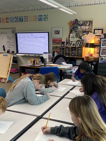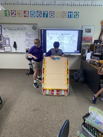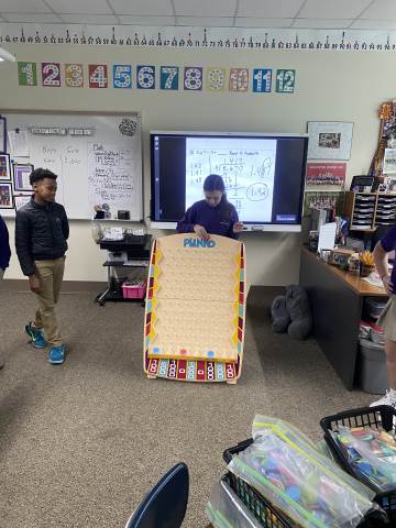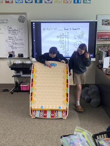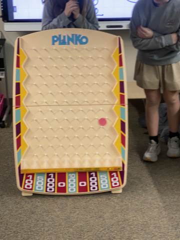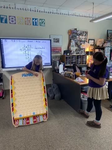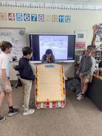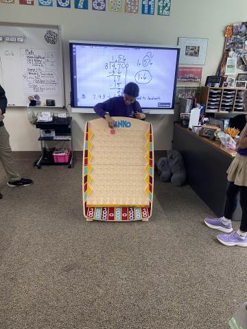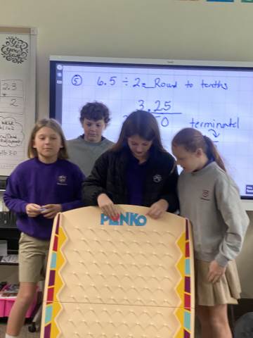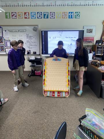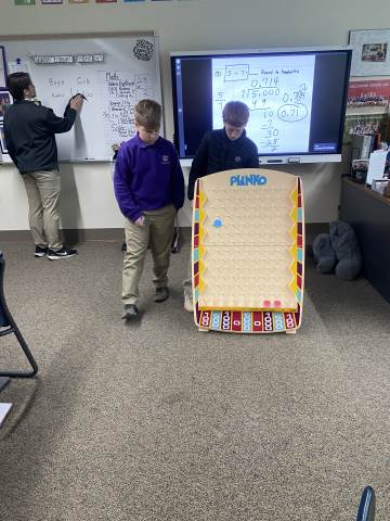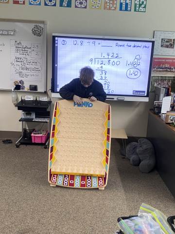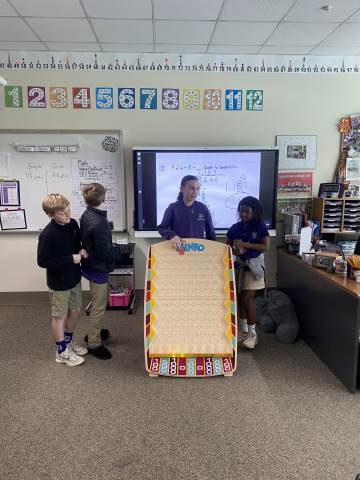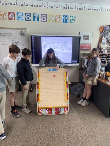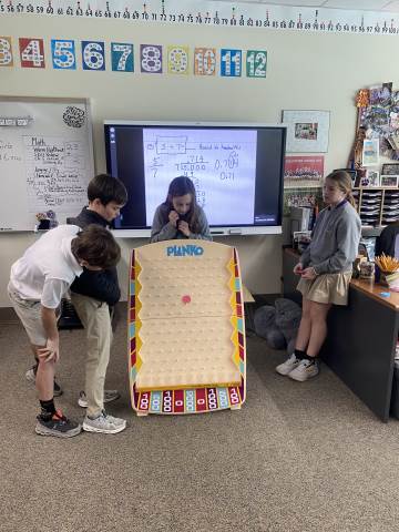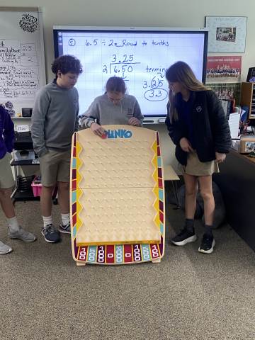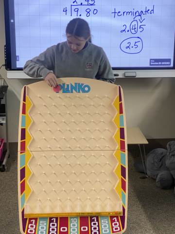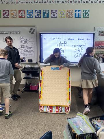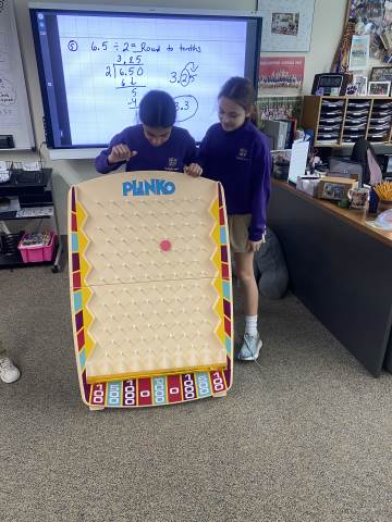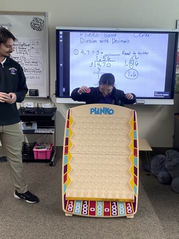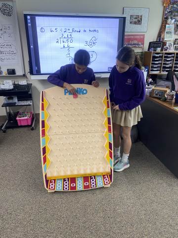 Fifth-graders had fun practicing the skill of dividing with decimal by playing the Price is Right game Plinko.