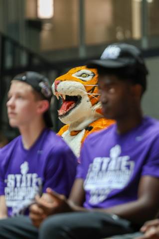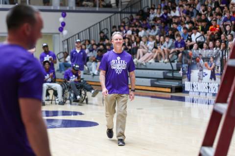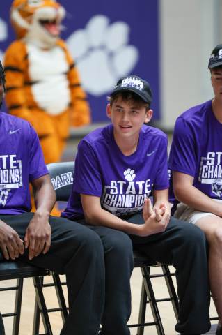 The Darlington Community gathers to celebrate the varsity boys' basketball team after the team brought home the GHSA A-AAA Private Boys State Championship on March 11, the first state championship in school history for this program. Head coach Nathan West gave a heartfelt address and everyone watched a documentary created by junior Brooke Temple (shared in this gallery) before the players and coaches cut the net.