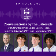 In this episode of Conversations by the Lakeside, Head of School Brent Bell talks with Lance Carroll ('27), Cameron Edwards ('27) and Rayan Noor ('27) of Darlington School Soccer Academy about their experiences in the program, the opportunities it provides, and the transition to MLS NEXT.